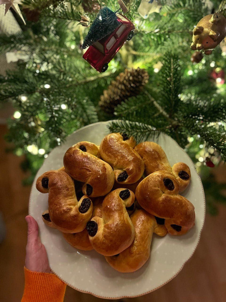 Сегодня в программе булочки, которые скандинавы начинают печь ко Дню Святой Люсии и пекут почти весь декабрь. У них прекрасный жизнерадостный цвет, они отлично подходят к горячему вину по вечерам и к завтраку, если намазать их маслом.